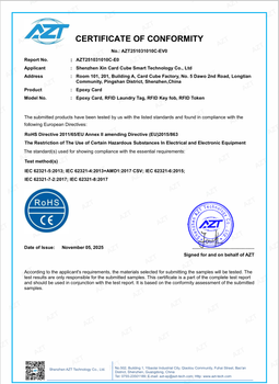 Produk utama: Kartu pintar, gelang RFID, kunci fob RFID, Keyfob epoksi, Tag PVC cakram